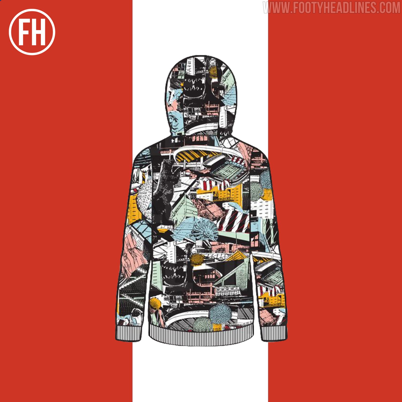 Die Nike Atletico Madrid 2022-2023 Jacke besticht durch einen außergewöhnlichen Look, der alles andere als klassisch ist. Inspiriert von Atléticos neuem (Wanda Metropolitana) und altem (Vicente Calderón) Stadion und dem Neptunbrunnen, besticht die Nike ATM 2022-23 Jacke mit einem Allover-Grafikdesign im Comic-Stil.