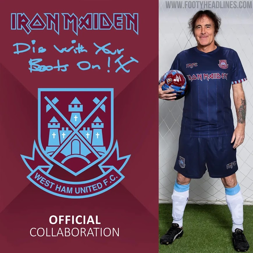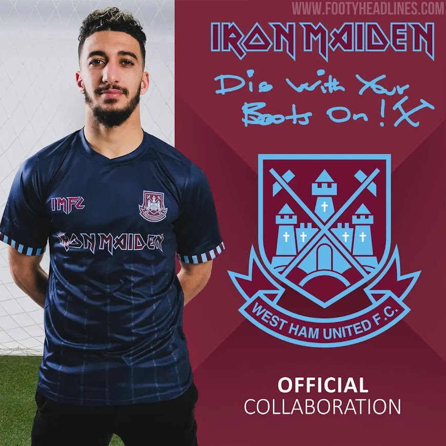 Die englische Heavy Metal Band Iron Maiden hat sich wieder einmal mit West Ham zusammengetan, um ein spezielles Fußballtrikot und eine Trainingsserie zu entwickeln.