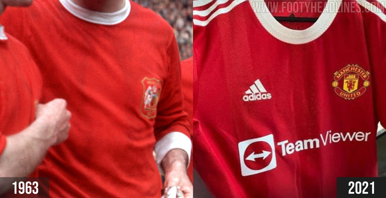 Die ersten echten Bilder des Adidas Manchester United 21-22 sind geleakt. Das Trikot hat einen klassischen Look, der von einem klassischen ikonischen Manchester United Trikot inspiriert ist - dem FA Cup Finale von 1963.