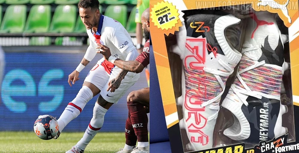 Update: Neymar wird im Champions League Spiel gegen Manchester City am Mittwochabend einen neuen, einzigartigen Puma Future Fußballschuh im Fortnite-Design tragen. Auf dem hinteren Bereich der Puma Future Spectra Pack Schuhe sind zwei Fortnite-Charterer zu sehen.