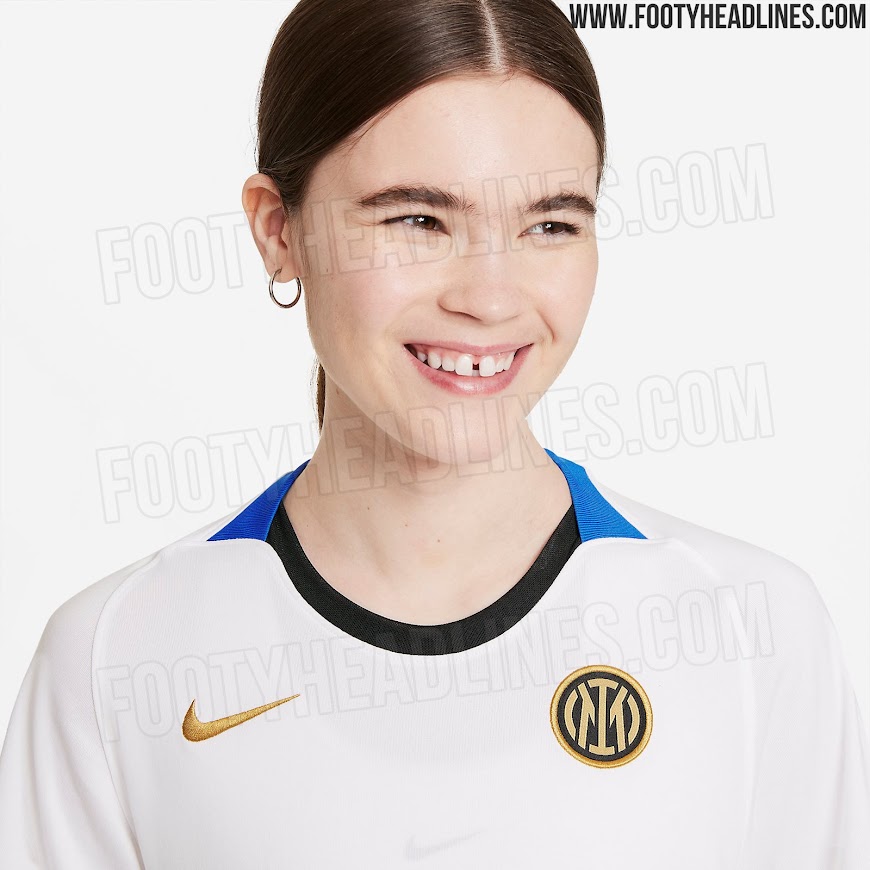 Das neue Vereinswappen befindet sich auf der linken Brustseite des Trikots, während die Wortmarke von Inter Mailand auf dem oberen Rücken unterhalb des Kragens erscheint. Der Kragen ist derselbe, der auch bei Liverpools Trikot 2021-2022 zum Einsatz kommt. Er ist vorne schwarz und hinten blau.