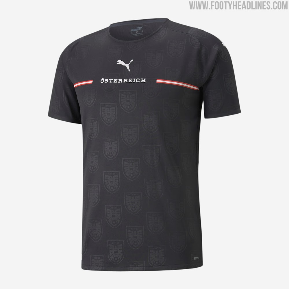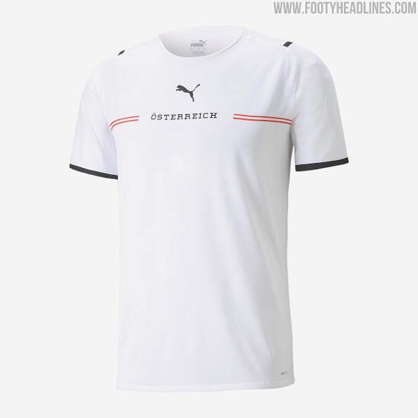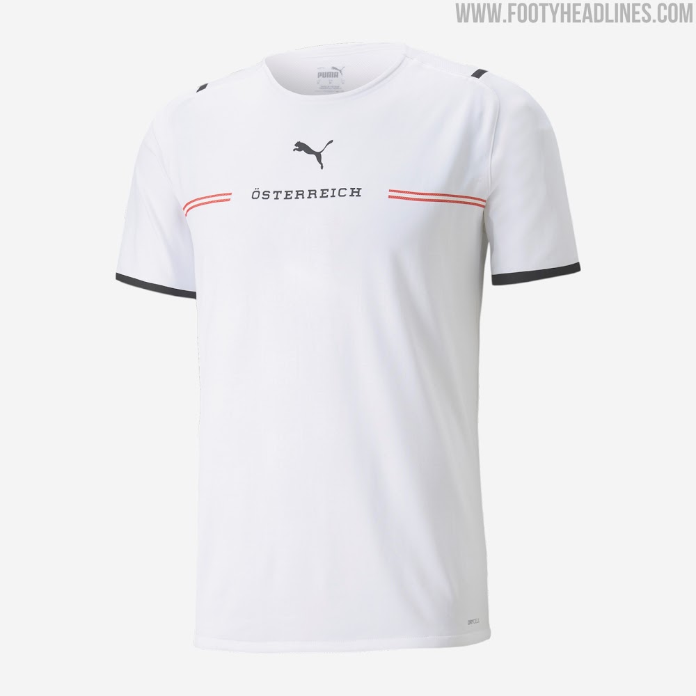 Puma präsentierte heute neue Auswärts- und Torwarttrikots für Österreich für die Saison 21-22, die bei der EM im Sommer getragen werden.