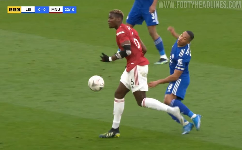 In jenem Spiel in der 22. Minute verlor Pogba bei einem Zweikampf gegen Leicester-Stürmer Kelechi Iheanacho seinen linken Schuh, was Pogba dazu zwang, seine Schuhe an der Seitenlinie zu wechseln. Dadurch geriet Manchester United beim folgenden Eckstoß in Unterzahl.