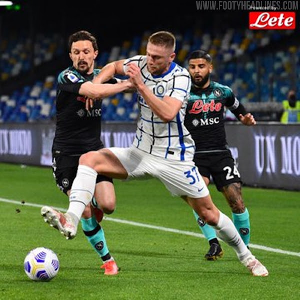 Napoli wird diese Trikots am 18. April gegen Inter tragen. Eines ist für die Außenspieler (schwarz) und das andere für die Torhüter bestimmt.
