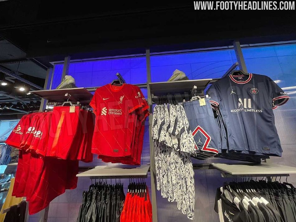 Update: Unser Follower Tracy hat uns neue Bilder der neuen Nike Barcelona, Chelsea, Liverpool und PSG 21-22 Heimtrikots geschickt, die er in einem Sportgeschäft gesehen hat. Während wir von den meisten dieser Trikots bereits einiges gesehen haben, sind die neuen Bilder die ersten, die das Basketball-inspirierte Design der PSG 21-22 Heimshorts komplett bestätigen.