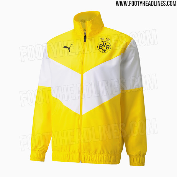 Verschiedene offizielle Bilder der Borussia Dortmund Kollektion 2021-22 sind geleakt und zeigen uns nicht nur das Trikot, sondern auch drei Torwarttrikots, die alle auf der neuen Template von Puma basieren, sowie die neue Einlaufjacke und das Pre-Match-Shirt.