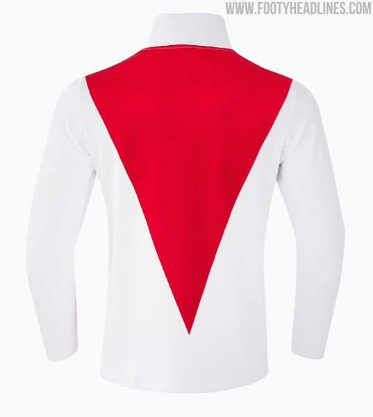 Die neue Stuttgarter Einlaufjacke ist ein Throwback zu ihrer Saison 1970/1971. Sie hat ein kariertes Design mit weißen und roten Blöcken. Auf der Rückseite der Jacke befindet sich ein großes rotes Dreieck.