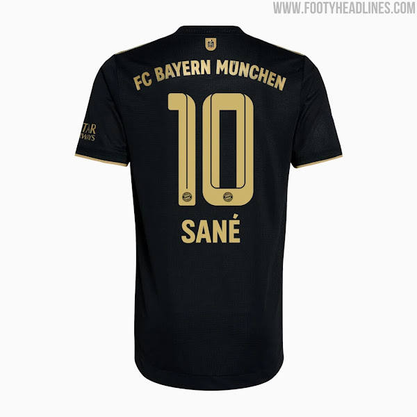 Auf dem schwarzen Auswärtstrikot 2021-22 ist die neue Schriftart in Gold aufgebracht.