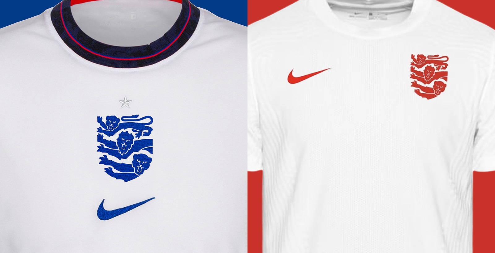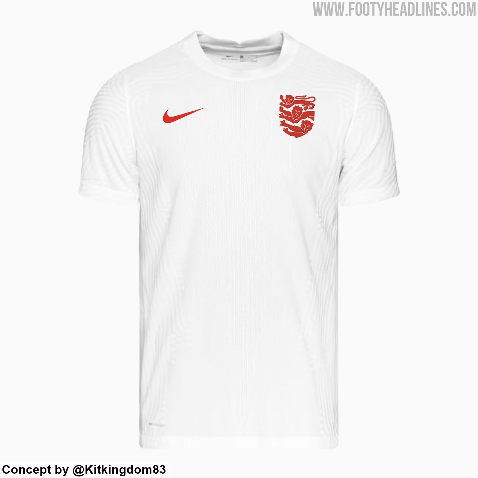 Wir haben uns vorgestellt, wie das England Fußball-Logo auf dem aktuellen Nike England 2020-2021 Trikot aussehen würde, anstelle der berühmten Three Lions.