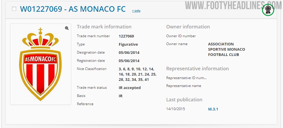 Tatsächlich wurde das aktuelle Markenzeichen für das Logo des AS Monaco FC vom Verein im Jahr 2015 besetzt. Es gibt keine neue AS Monaco-Marke im offiziellen EU-Markenregister.