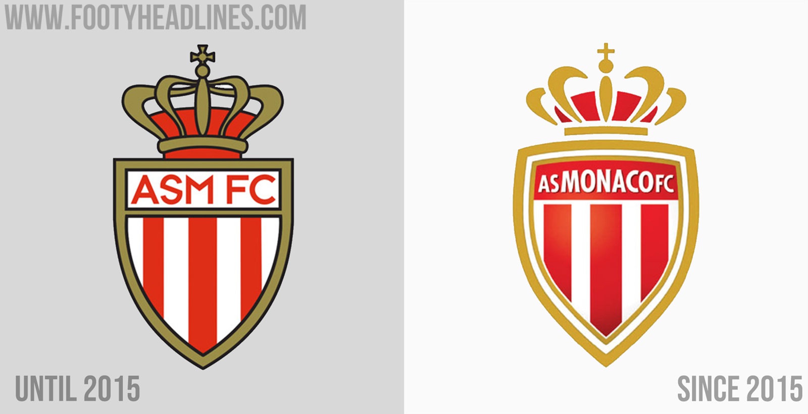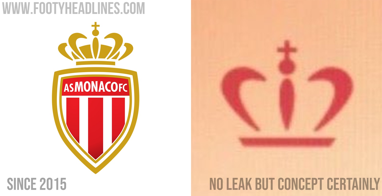 Das 'neue' AS Monaco Logo ersetzt das aktuelle Design zugunsten einer Krone, mit dem Schriftzug AS Monaco darunter. Es ist ein Look, der eine große Veränderung zum aktuellen Wappen wäre, und irgendwie einzigartig in der Welt des Fußballs.