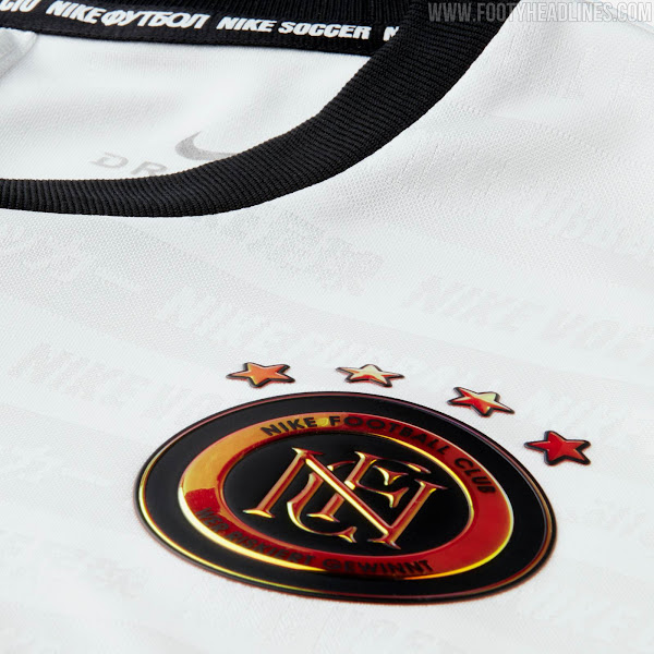 Das Trikot ist schwarz-weiß und hat ein geometrisches Design. Dies ist eine Template, die bereits für andere Nike F.C Trikots verwendet wurde, wie zum Beispiel für das Trikot von Inter Mailand. Der Schriftzug "Nike Soccer" ist dezent in verschiedenen Sprachen auf das Trikot gedruckt.