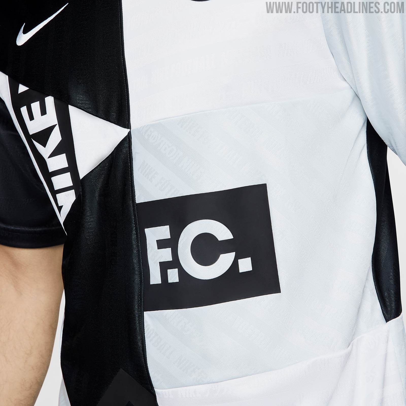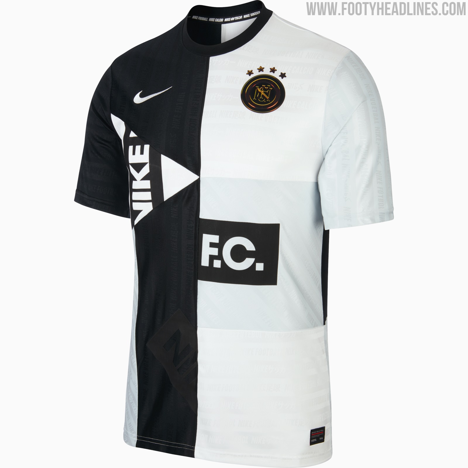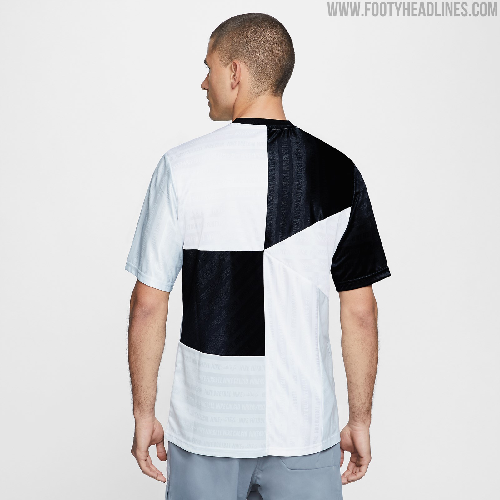 Das Trikot ist schwarz-weiß und hat ein geometrisches Design. Dies ist eine Template, die bereits für andere Nike F.C Trikots verwendet wurde, wie zum Beispiel für das Trikot von Inter Mailand. Der Schriftzug "Nike Soccer" ist dezent in verschiedenen Sprachen auf das Trikot gedruckt.