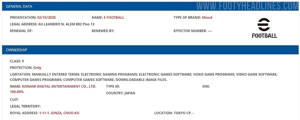 Nun haben Renan Galvani und Elrussiwe neue Markenanträge in Argentinien und Brasilien entdeckt, die darauf hindeuten, dass der Name "eFootball" wird, inklusive eines neuen Logos. Du kannst dir den Antrag aus Argentinien, der bereits im Oktober letzten Jahres eingereicht wurde, hier ansehen.