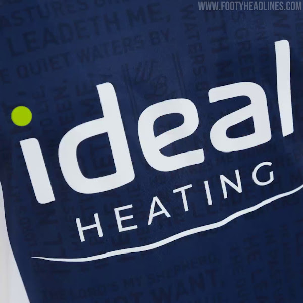 Der zentrale blaue Streifen trägt die erste Strophe von Psalm 23, den die Albion-Fans seit Jahrzehnten von den Terrassen weit und breit singen.
