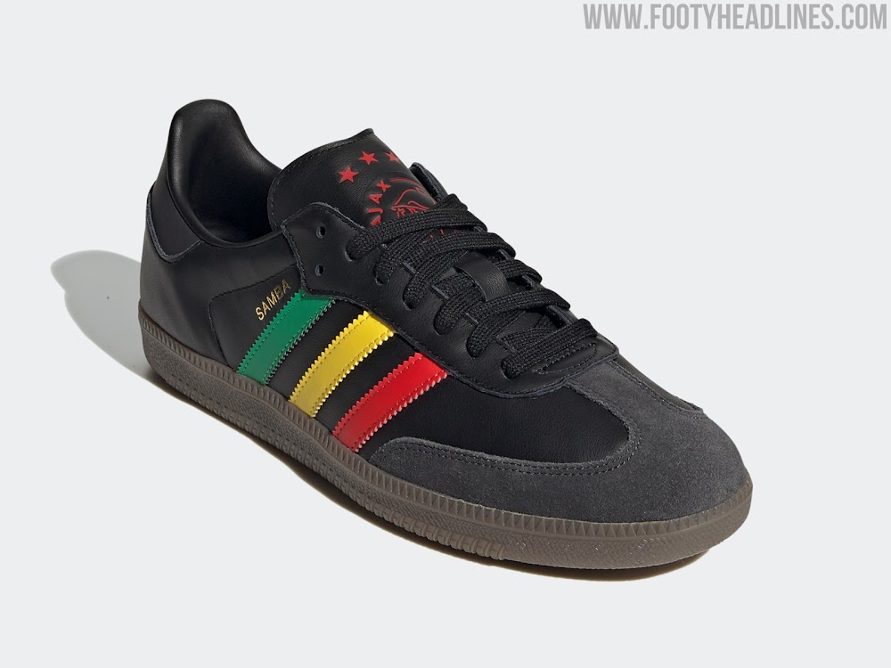 Adidas hat ein Paar "Samba" Sneaker herausgebracht, die vom 'Bob Marley' Ajax 2021-22 Trikot inspiriert sind.