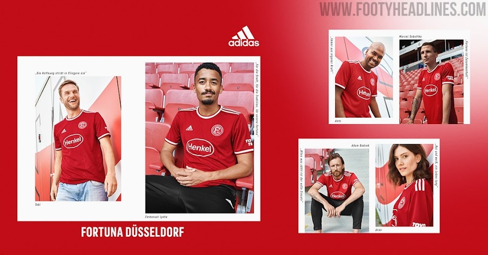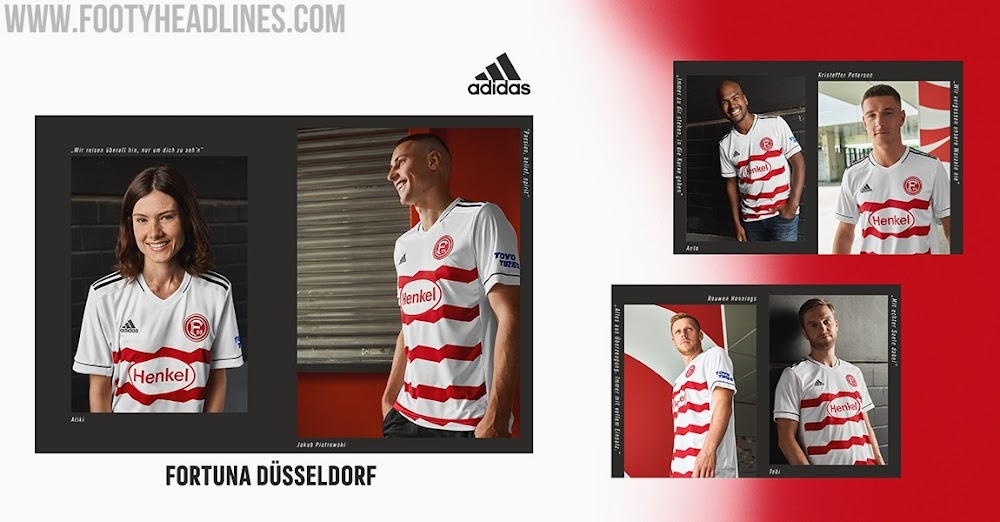 Gemeinsam mit der Weltmarke Adidas und dem Ausrüstungsspezialisten 11teamsports hat der deutsche 2. Bundesligist Fortuna Düsseldorf heute Mittag die drei Trikots für die kommende Saison 2021-22 in der 2. Bundesliga vorgestellt.