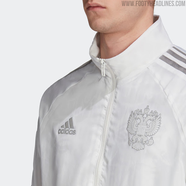 Dies ist die Adidas Uniforia Russland Hymnen-Fußballjacke, hergestellt von Adidas.
