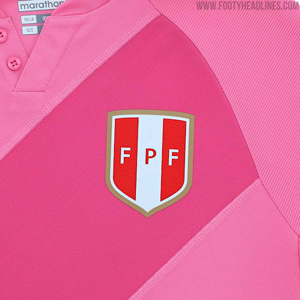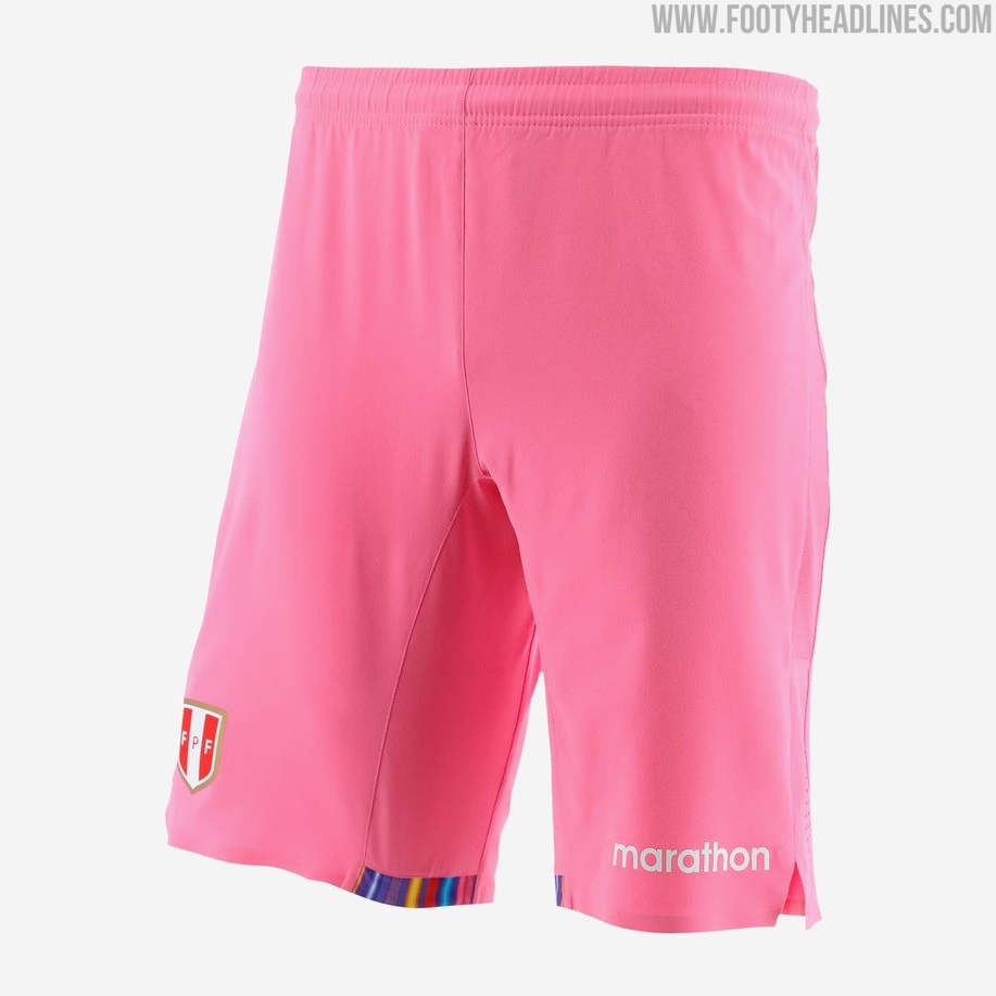 Basierend auf dem gleichen Design wie das Spielertrikot, ist das Marathon Peru 2021 Copa America Torwart Fußballtrikot pink. Das zweite Torwarttrikot ist gelb.