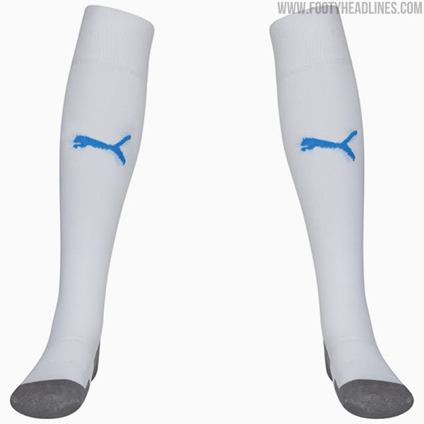 Himmelblaue Hosen und weiße Stutzen vervollständigen das neue Puma Inverness Caledonian Thistle FC 2021-22 Auswärtstrikot.