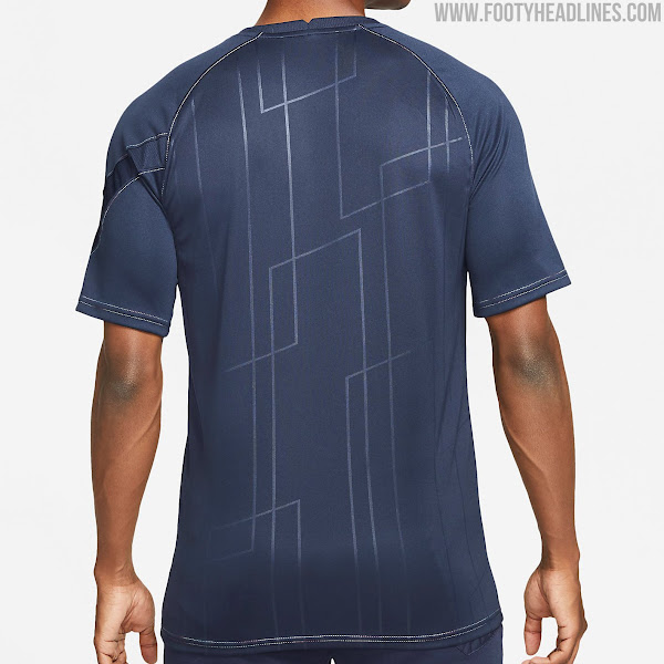 Das Nike FC Barcelona 2021-2022 Ausw ärts Pre-Match Trikot hat die gleiche Inspiration wie das PM Trikot, setzt sie aber viel subtiler um. Es ist dunkelblau und die Grafik ist als tonaler Jacquard-Druck aufgebracht.