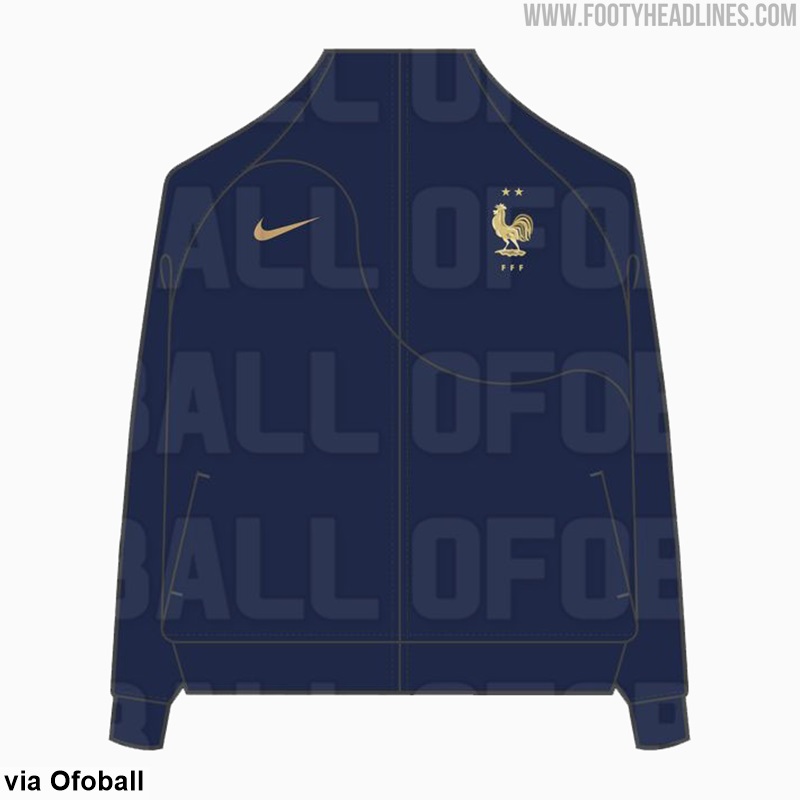 Das genaue Design des Nike Frankreich 2022 World Cup Heimtrikots ist noch nicht bekannt. Die geleakte Einlaufjacke zeigt jedoch die klassische Designsprache des Trikots.