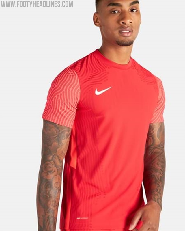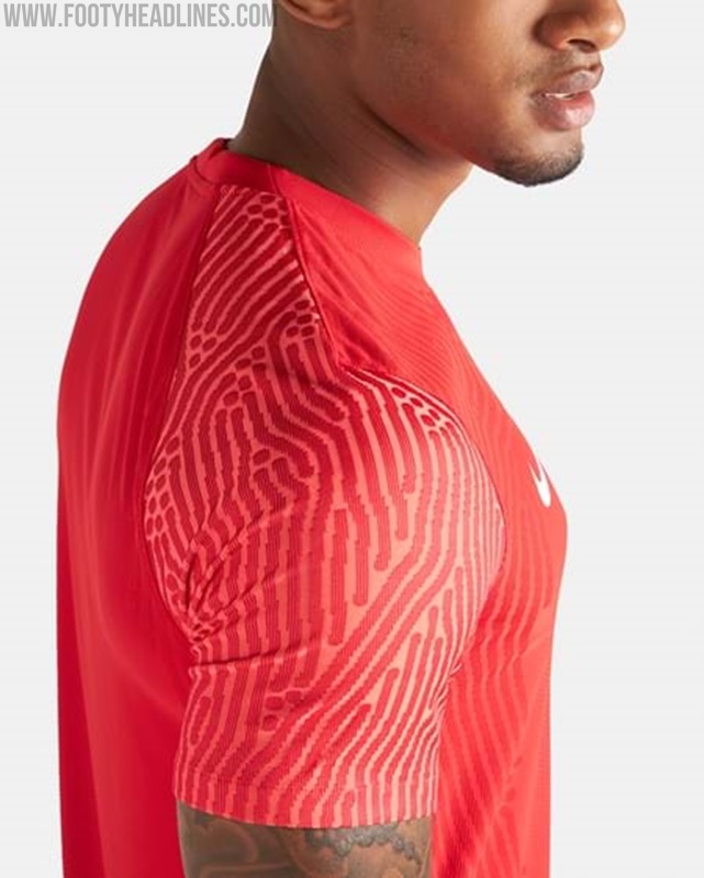 Das Nike Kanada 2021 Trikot basiert auf Nikes Strike II Template in Rot und Weiß. Das Shirt verfügt über das Varpoknit-Muster der letzten Saison an den Ärmeln in einem helleren Rotton.