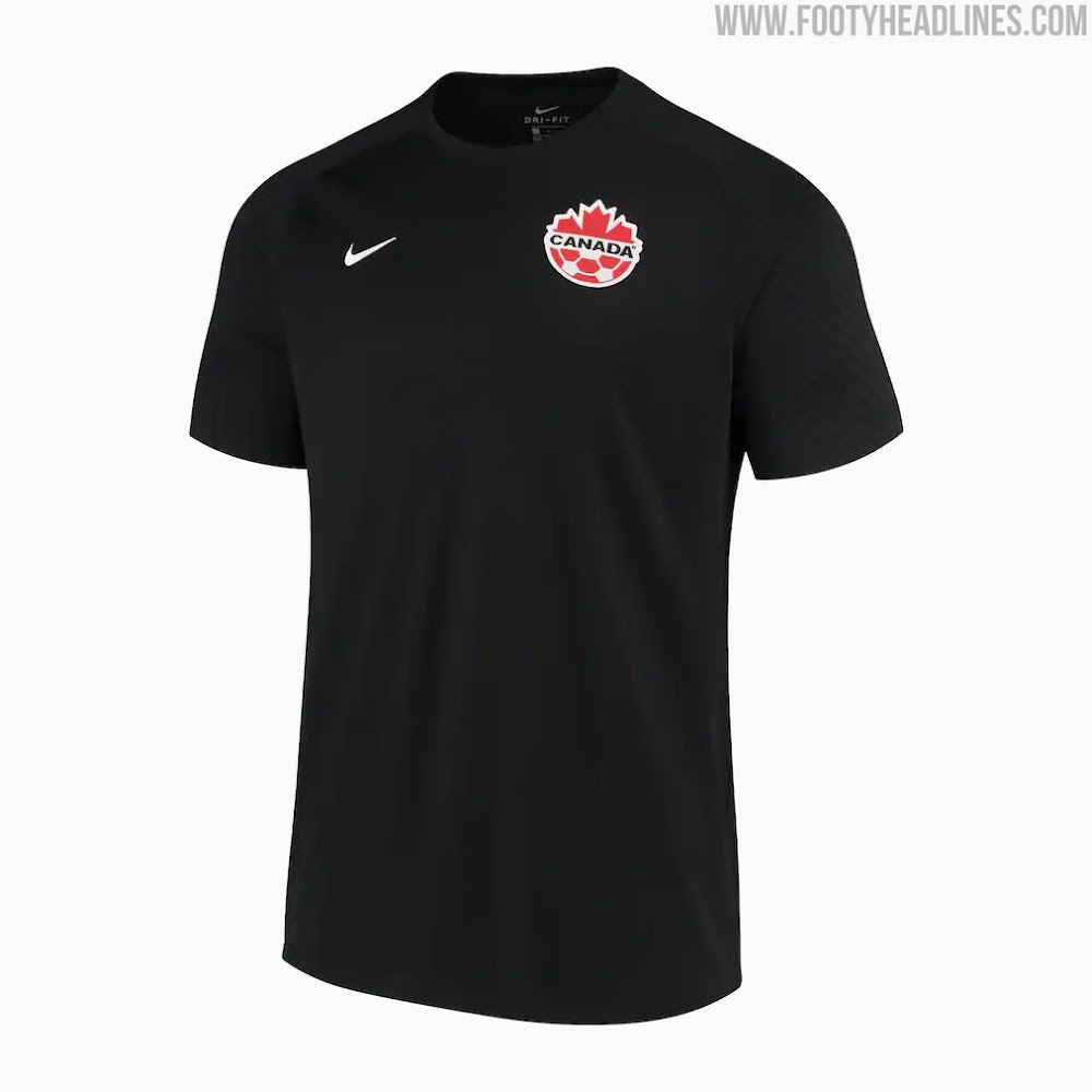 Das Nike Kanada 2021 dritte Tr ikot ist schwarz mit weiß, wieder basierend auf der Nike Strike II Template.