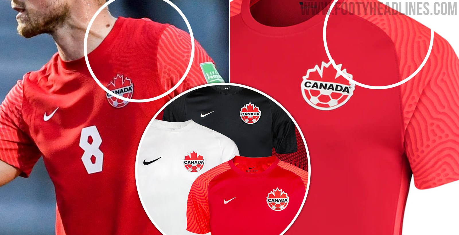 Das neue Heim-, Auswärts- und dritte Trikot der kanadischen Nationalmannschaft, hergestellt von Nike, wurde vor ein paar Tagen enthüllt. Das neue Trikot wurde gestern Abend beim 7:0-Sieg gegen Aruba in der Qualifikation zur Weltmeisterschaft 2022 vorgestellt.