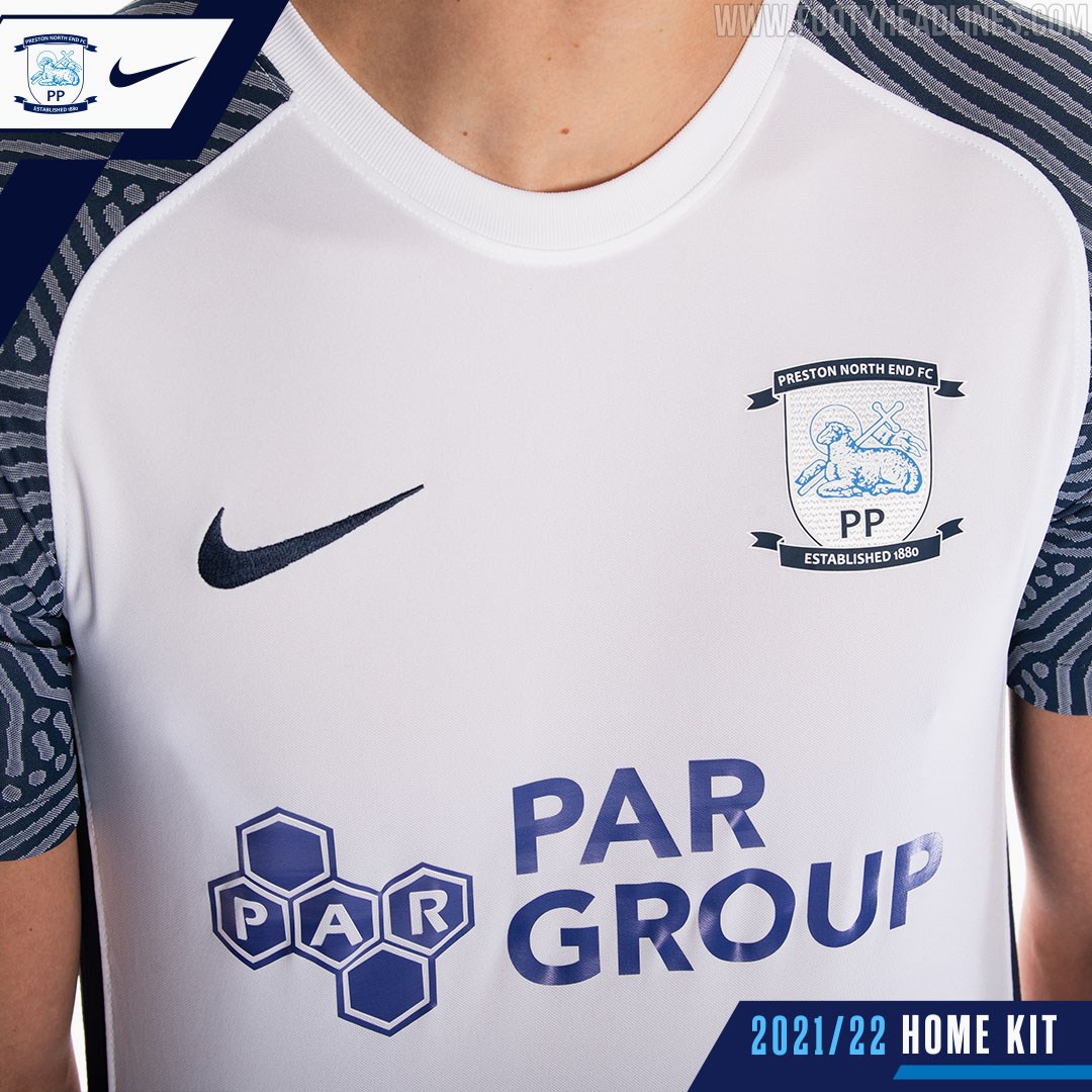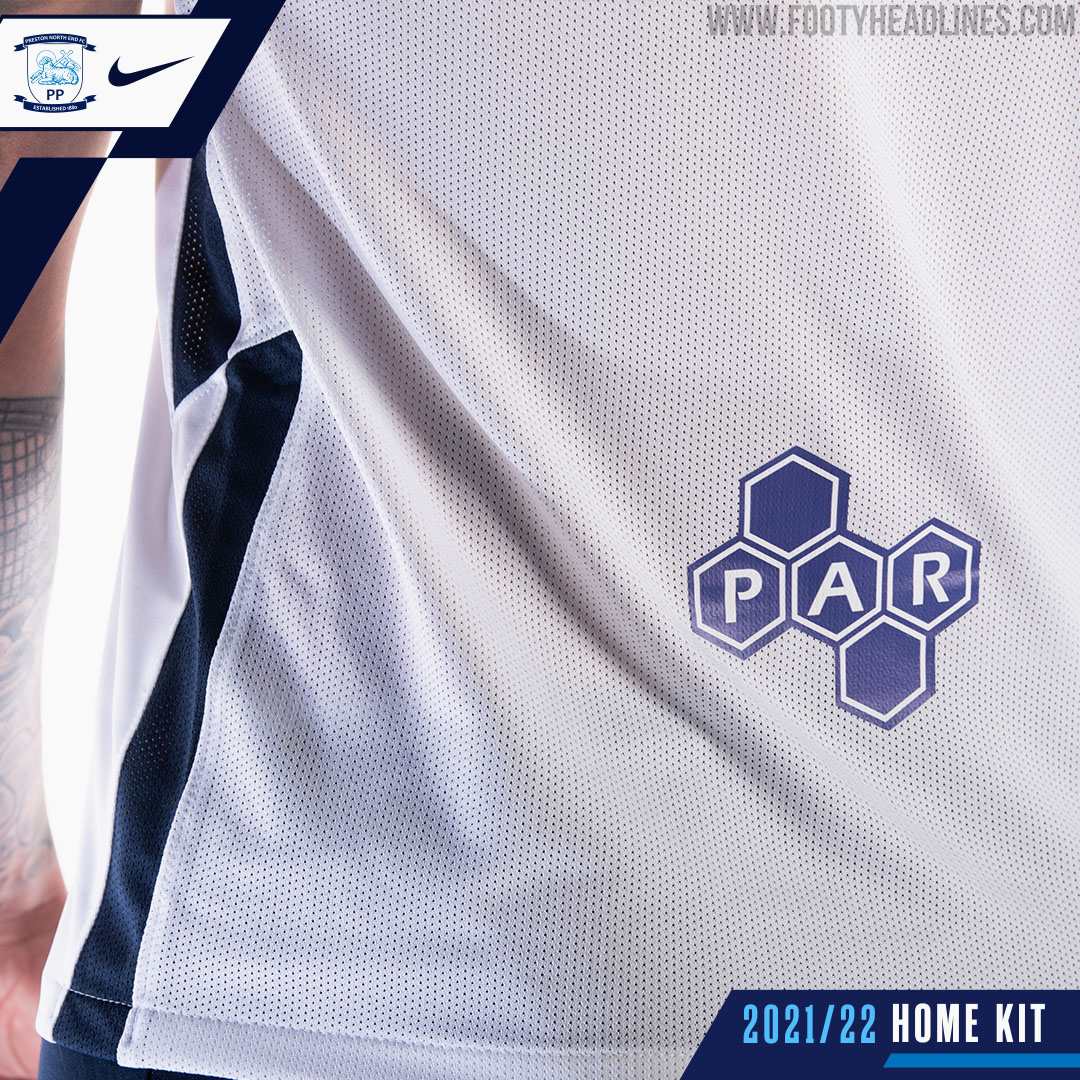 Der neue Hauptsponsor PAR Group ist auf der Vorderseite des Preston NE 21-22 Heimtrikots zu sehen.