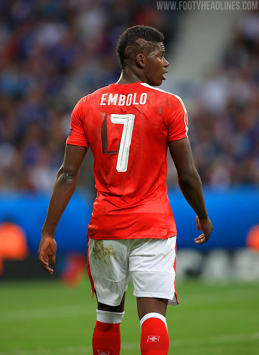 Im Auftaktspiel der Schweiz gegen Wales wurde Stürmer Breel Embolo von einem Verteidiger von Wales festgehalten. Sein Trikot dehnte sich extrem, aber es riss nicht. Stattdessen kehrte es in den ursprünglichen Zustand zurück.