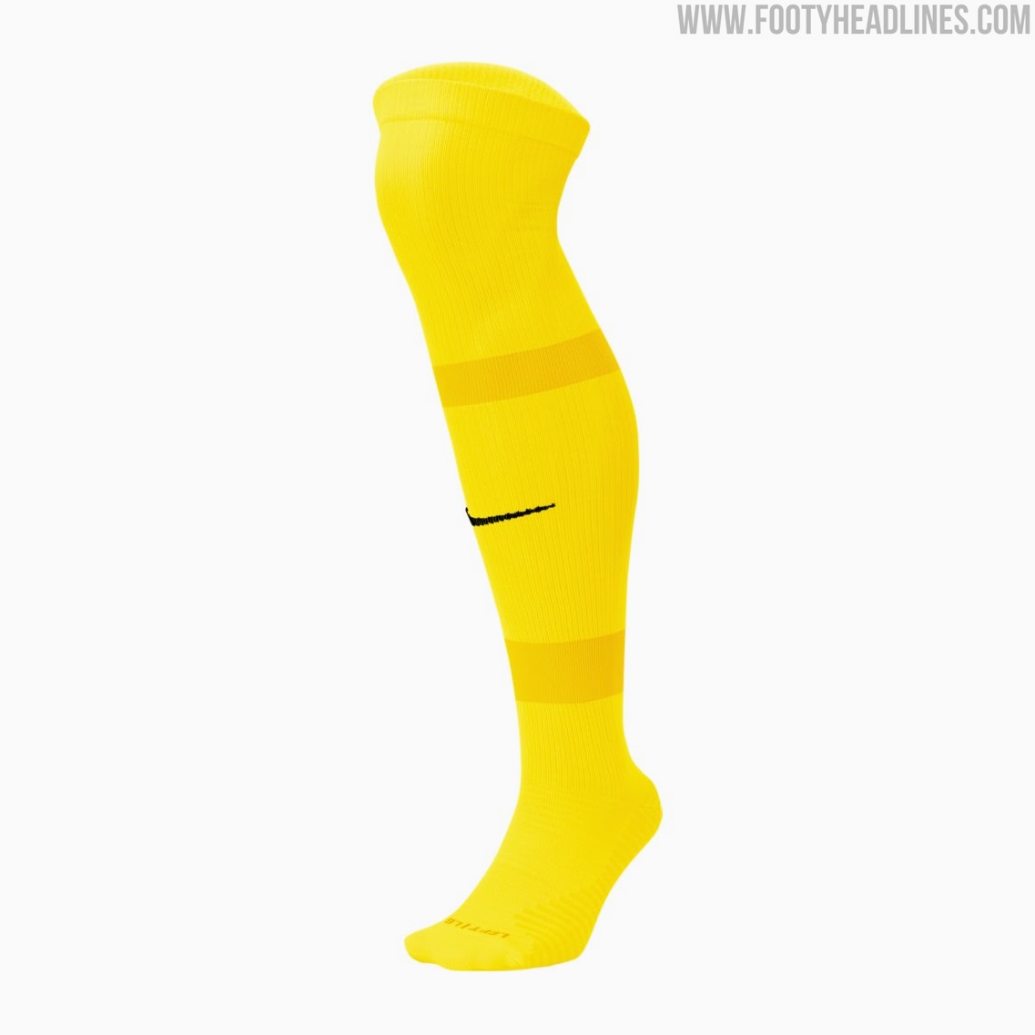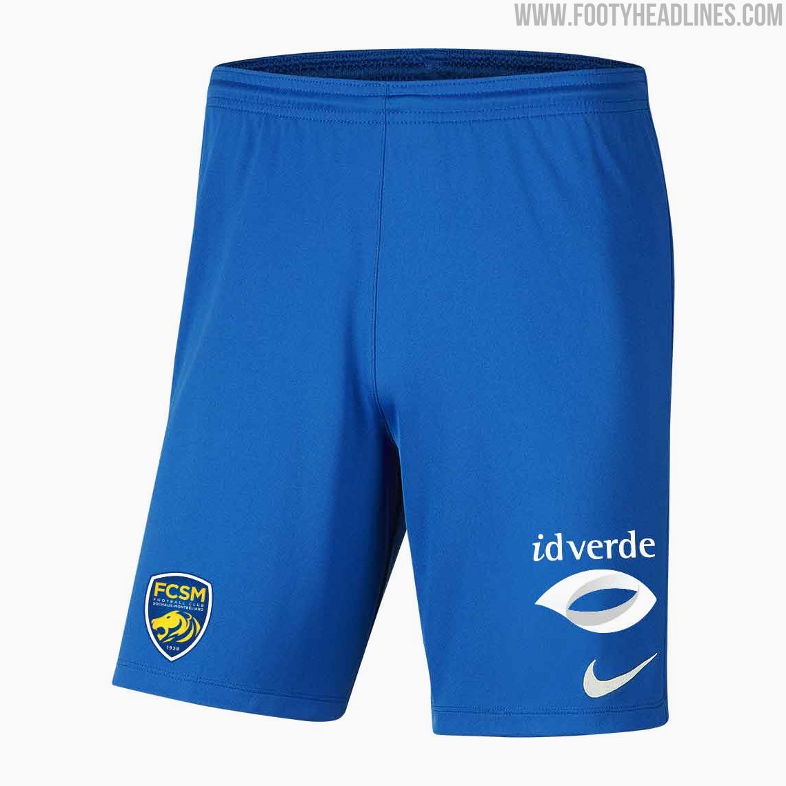 Blaue Hosen und gelbe Stutzen vervollständigen das neue Nike Sochaux 21-22 Trikot.