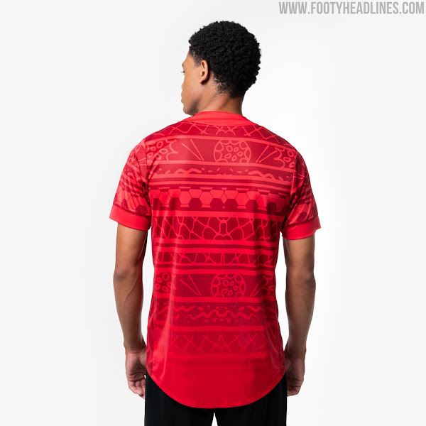 Das BOL Trinidad & Tobago 21-22 Trikot ist hauptsächlich rot, kombiniert mit weißen und schwarzen Applikationen. Laut BOL kombiniert das BOL Trinidad & Tobago 2021-22 Trikot Elemente des Fußballs mit Mustern trinbagonischer Keramik gemischt mit Silhouetten der Steelpan, dem nationalen Instrument.