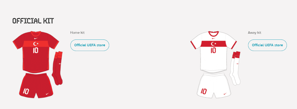 Als Nike die Türkei 2020 Trikots auf den Markt brachte, war das weiße Trikot das Trikot und das rote das Auswärtstrikot. Auf der Website von Nike ist das weiße Türkei-Trikot auch das Trikot.