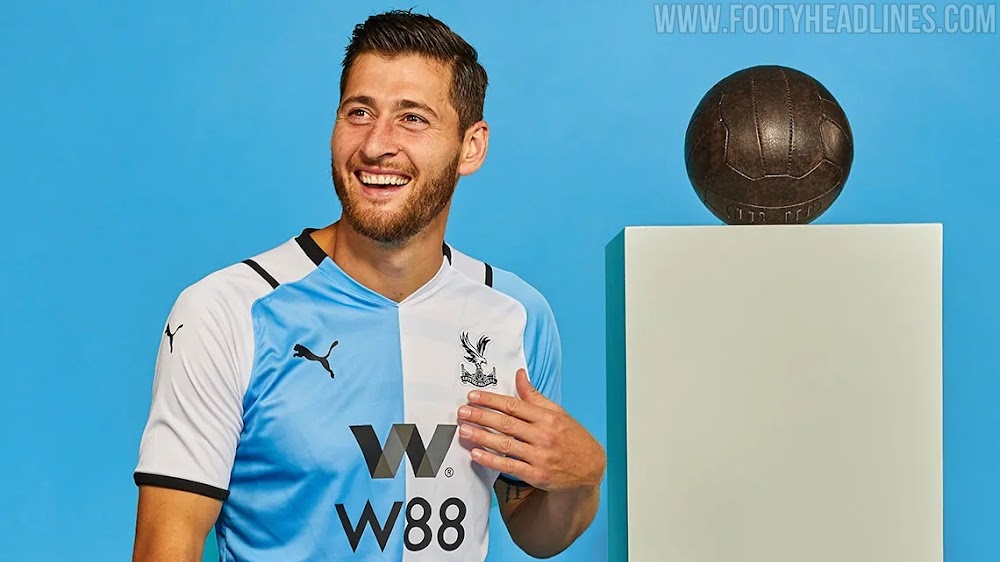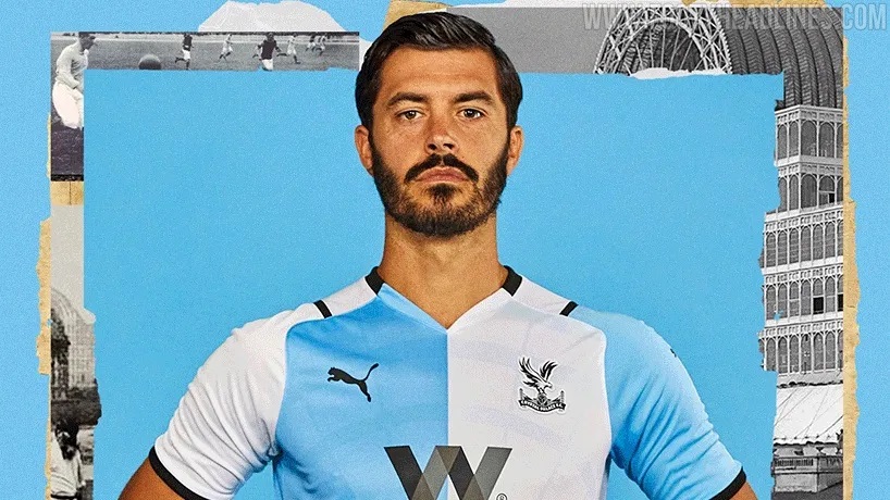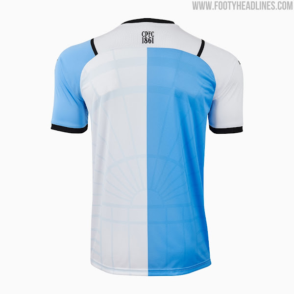 Das himmelblaue und weiße halbe und halbe Palace 21-22 dritte Trikot basiert auf den Farben und dem Design, das von der allerersten Mannschaft des Crystal Palace Klubs getragen wurde, die von Cricketspielern gegründet wurde, die sich während der Wintermonate fit halten wollten.