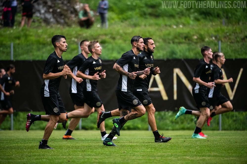 Update: Venezia hat weitere Bilder von ihrem Trainingslager veröffentlicht. Es gibt uns nicht nur einen besseren Blick auf die Kappa Venezia 21-22 Trainingsartikel, sondern auch auf ein spezielles Icon Venezia FC Logo - es zeigt den geflügelten Löwen aus dem Vereinslogo mit den Buchstaben VFC für Venezia FC darunter.