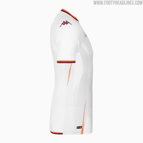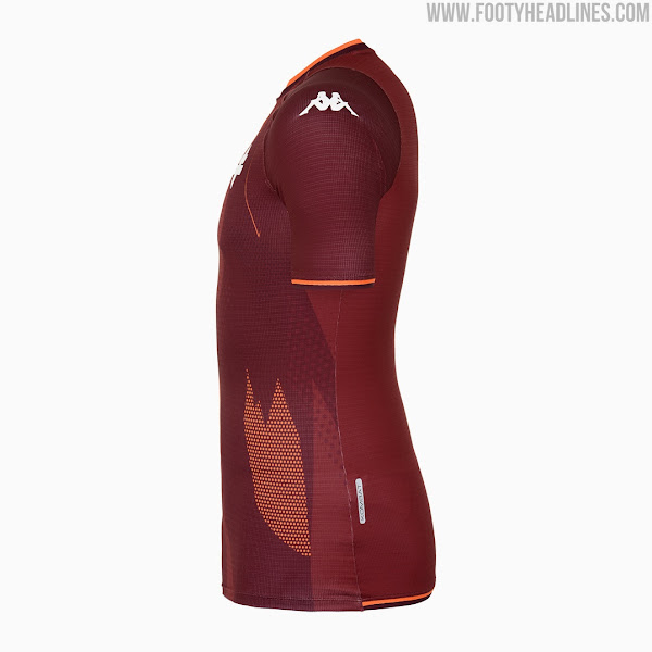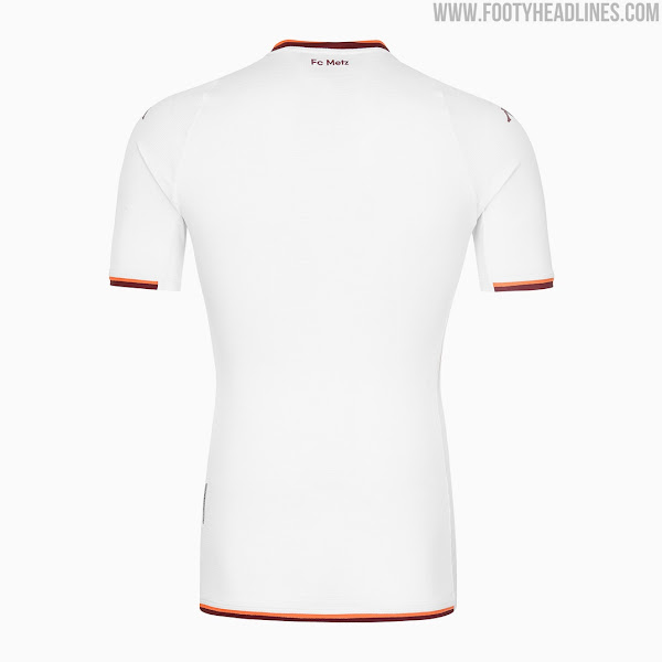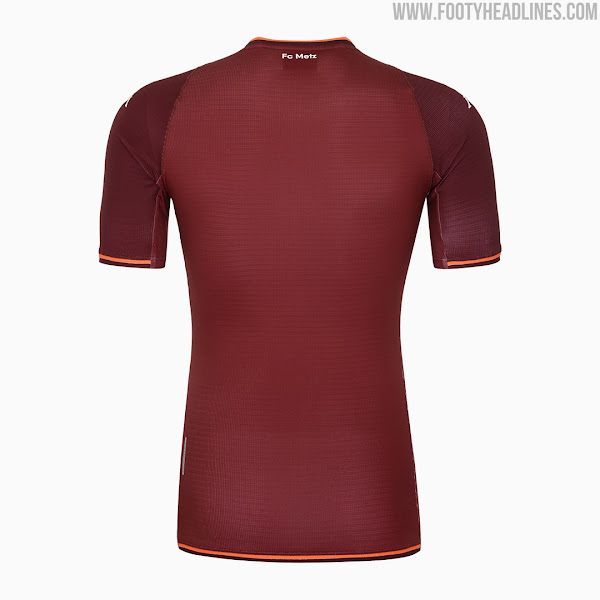 Das Kappa Metz 21-22 Trikot ist weinrot, was die traditionelle Farbe von Metz ist, aber kombiniert mit Orange neben dem Standard-Weiß.