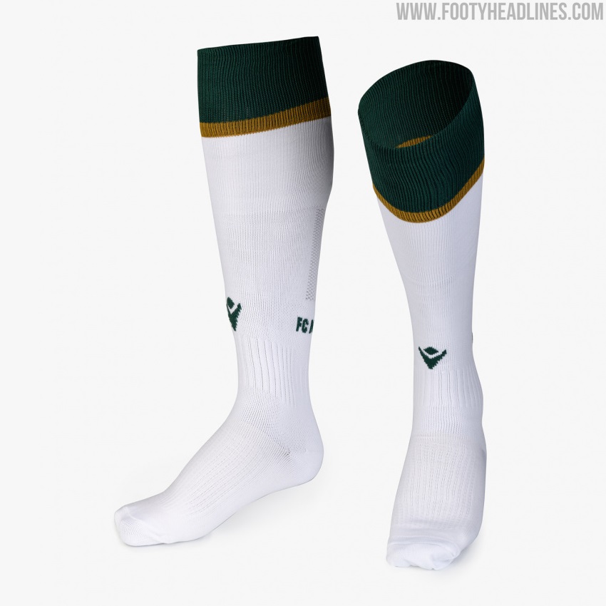 Das Macron FC N antes 21-22 Auswärtstrikot präsentiert sich in einem schicken Look in Weiß und Grün mit goldenen Elementen, inspiriert von der Saison 1991-92.