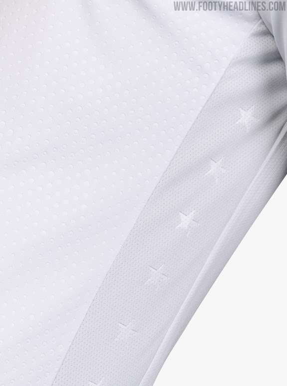 Details sind 8 geprägte Sterne an den Seiten des Macron Nantes 21-22 Auswärtstrikots sowie ein dezentes tonales Muster auf der Vorderseite.