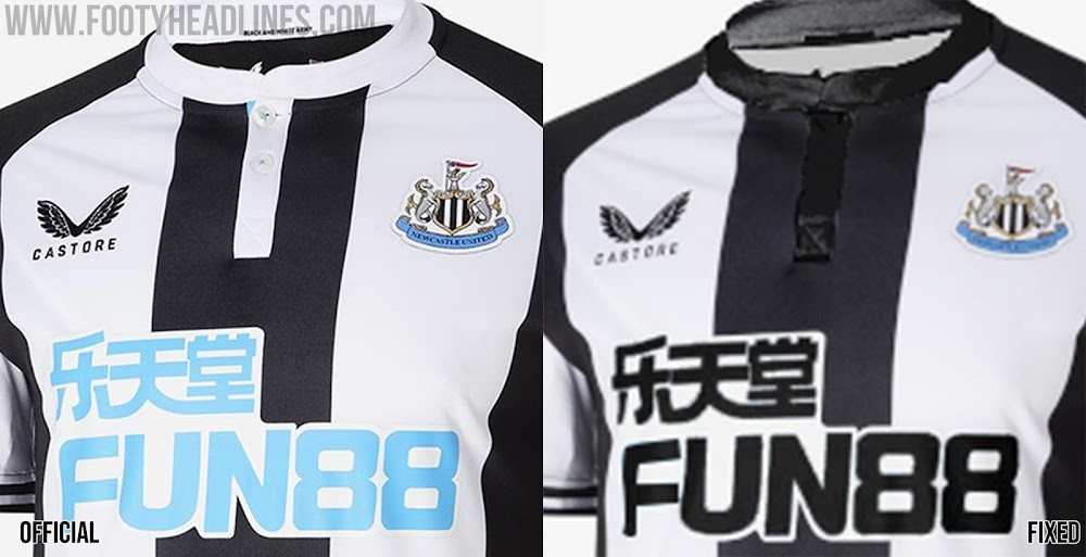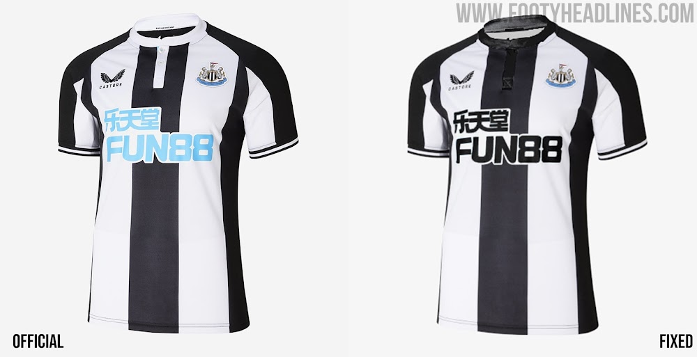 Newcastle United Fan und Grafikdesigner Magpin(@Magpin1) hat eine Korrektur des NUFC 21-22 Trikots erstellt. Er hat das unpassende blaue Fun88-Logo umgefärbt, damit es das gleiche Farbschema wie das Trikot hat - schwarz und weiß.