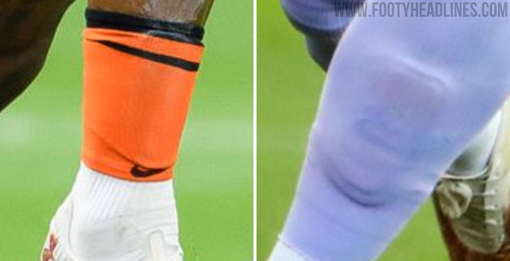 Während des Spiels passte Depay seine Stutzen so an, dass sie unter die Knie gingen. Am Ende des Spiels hatten seine Stutzen eine normale Höhe.