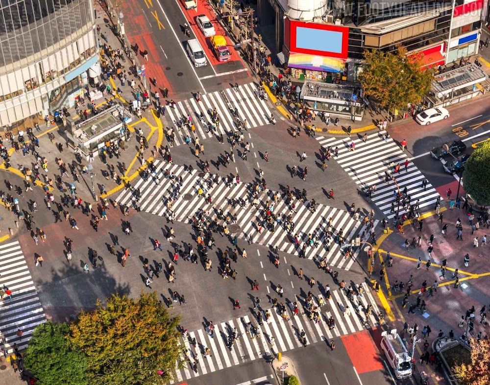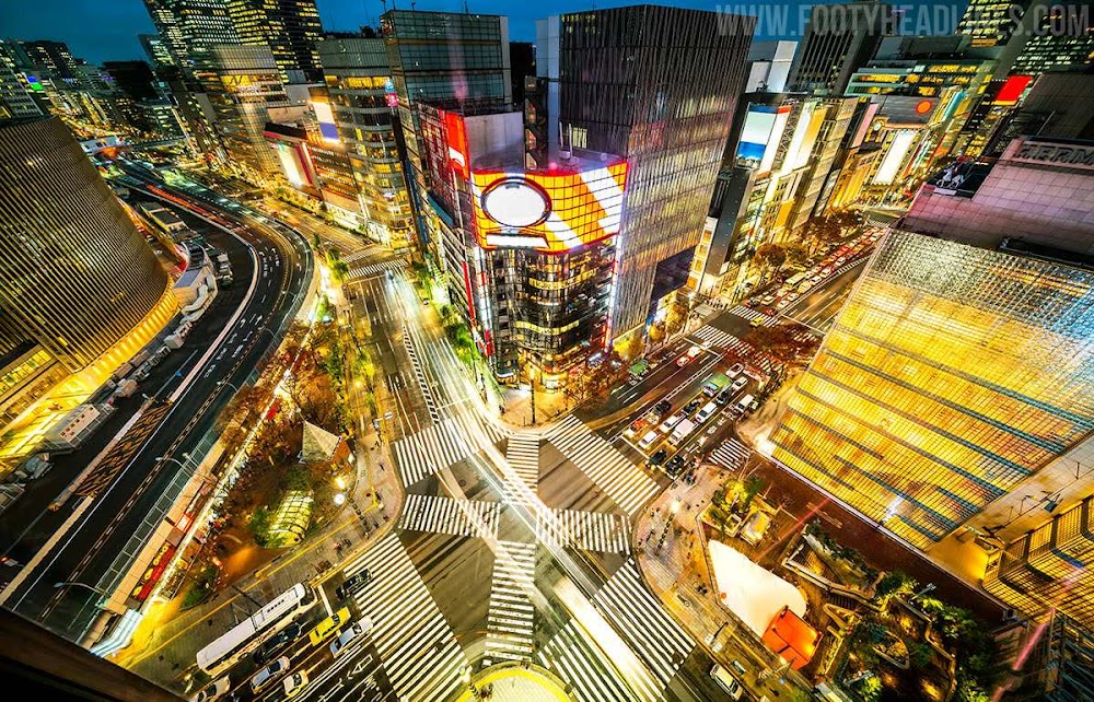 Im Fersenbereich befindet sich ein schwarz/weißes Streifenmuster, das von der berühmten Shibuya-Kreuzung in Toyko inspiriert sein könnte.