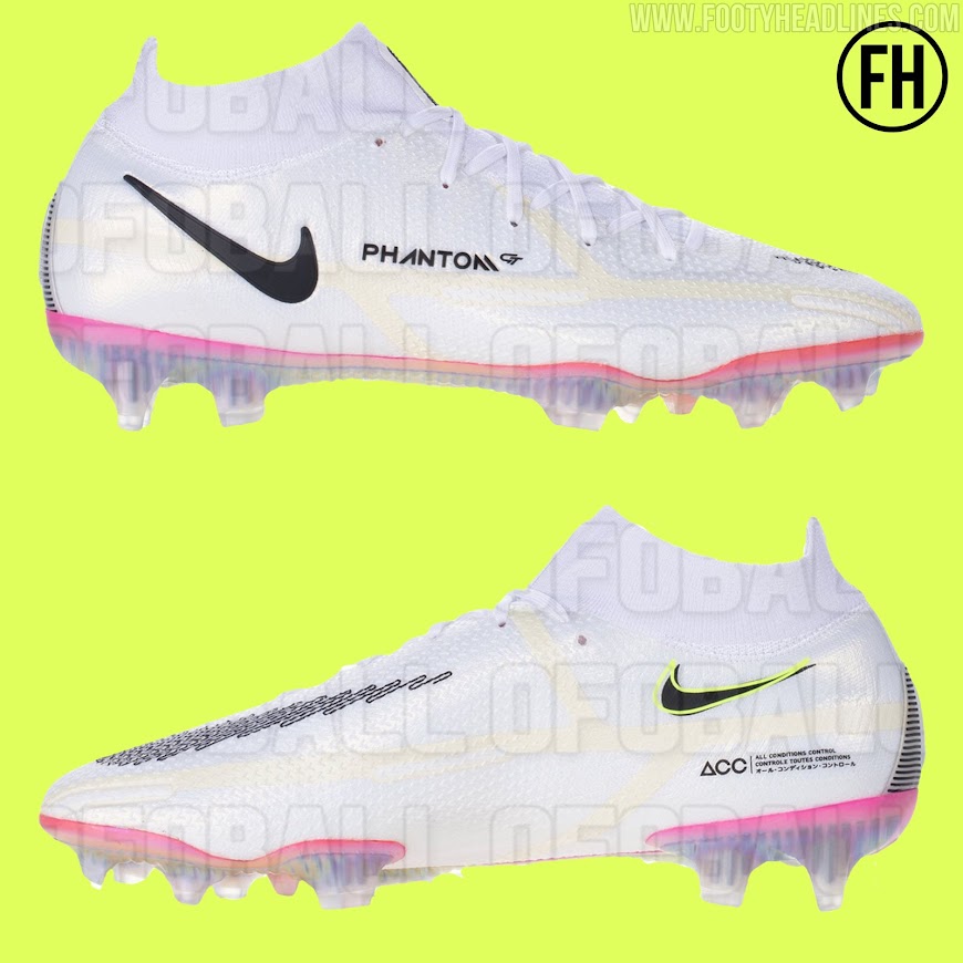 Die neuen 'White / Black / Bright Crimson / Pink Blast' Nike Phantom GT 2 Fußballschuhe haben ein einzigartiges und dennoch modernes Design, inspiriert von der Stadt Tokio.