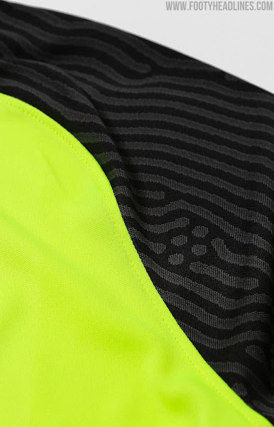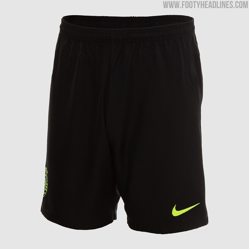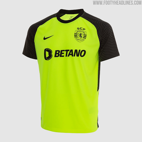 Das Nike Sporting 2021-2022 Auswärtstrikot verfügt über einen modernen und auffälligen Look in Volt und Schwarz, basierend auf der Strike II Template.