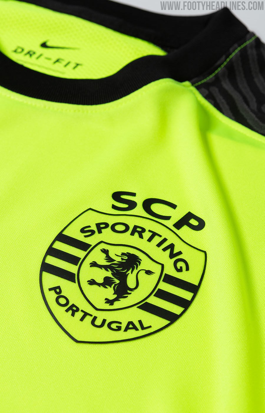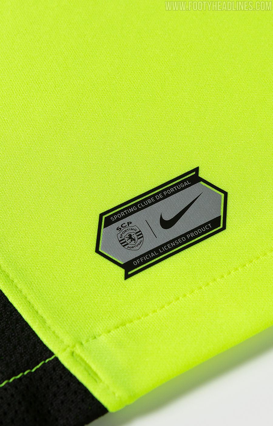 Das Nike Sporting 2021-2022 Auswärtstrikot verfügt über einen modernen und auffälligen Look in Volt und Schwarz, basierend auf der Strike II Template.