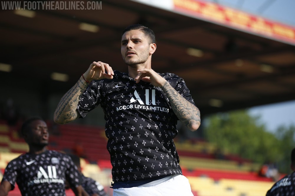 Sowohl Barcelona als auch PSG trugen auch ihre neuen 2021-22 Trikots vor dem Spiel. Nike entwarf maßgeschneiderte Aufwärmshirts für die Heim- und Auswärtstrikots beider Teams.