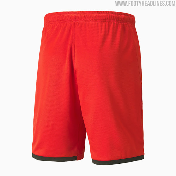Die Hosen des RC Lens 2021-22 Heimtrikots sind rot.