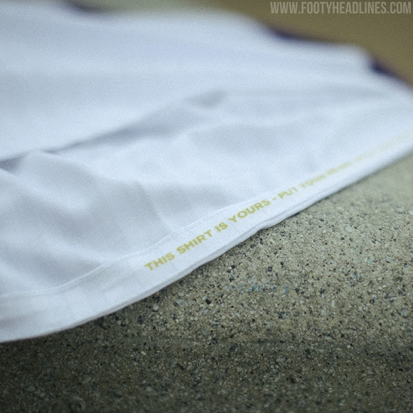 Das neue Spielermanifest ist subtil in das Design des Joma RSC Anderlecht 2021-2022 Heimtrikots integriert: "Dieses Trikot gehört dir. Lege dein Herz hinein und trage es mit Stolz und Respekt." steht auf dem Innensaum.