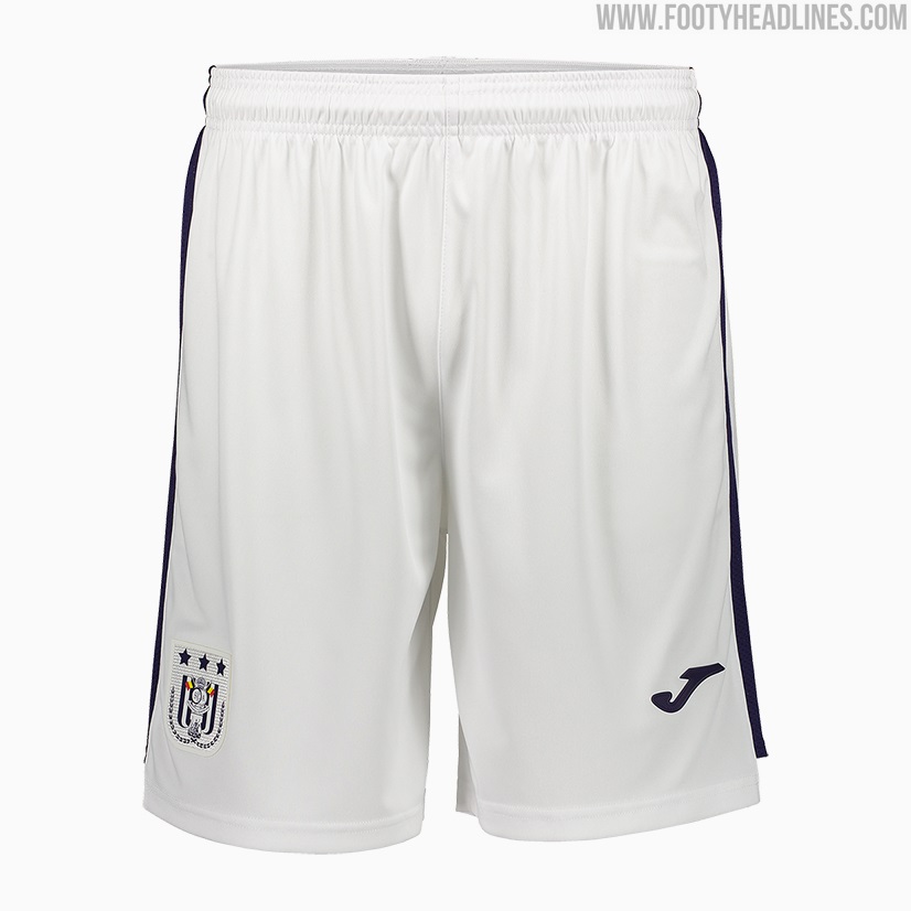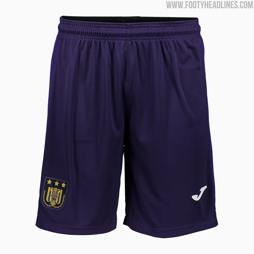 Joma kombiniert das RSC Anderlecht 2021-22 Trikot mit lila Hosen und Stutzen.