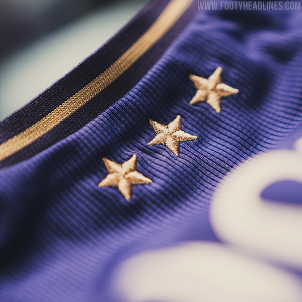 Neu in diesem Jahr sind goldene Akzente und Verzierungen, darunter ein neu gestaltetes Vereinswappen. Die Logos sind weiß.